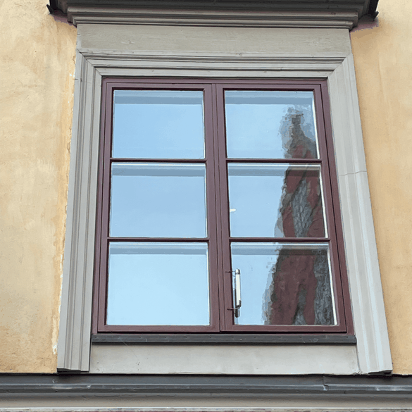 S:ta Clara kyrka uppfördes 1572–90 under ledning av Johan III:sarkitekt Willem Boy och byggmästaren Henrik van Huffven. Vid 1600-talets mitt byggs en sakristia mot långhusets norra sida vars järnfönster ännu finns kvar. 1726 uppförs en tillbyggnad mot den södra korsarmen med trapphus och vapenhus efter ritningar av Adelcrantz. Tillbyggnadens fyra småspröjsade träfönster är sannolikt ursprungliga. 1751 brinner kyrkan och tornspiran, samtliga tak, taklister, fönster och all inredning förstörs och klockorna smälter. En återuppbyggnad verkställs omgående under ledning av slottsarkitekten Carl Hårleman. Nya fönsteromfattningar av sandsten och fönsterbågar av smidesjärn sätts in (de nuvarande kyrkfönstren). Riddarvalvet tillsammans med antikvarie Max Laserna restaurerar nu i flera etapper dessa kyrkfönster i gjutjärn kalkstensomfattningar under ett flerårigt projekt.